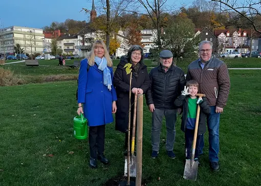 Frankenberg(pm). Gemeinsam haben Frankenbergs Bürgermeisterin Barbara Eckes und einige Vorstandsmitglieder der Partnerschaftsvereinigung Bäume im Ederuferpark gepflanzt. Es handelt sich dabei um drei Linden. Die jungen Bäumchen waren ein Geschenk der Partnerstadt Frankenberg in Sachsen zum kürzlich begangenen 35-jährigen Jubiläum der Städtepartnerschaft. Ganz in der Nähe der „Bootsbank“, ebenfalls ein Geschenk aus Frankenberg/Sachsen, können die Bäume sich in den kommenden Jahren entfalten. Bürgermeisterin und Vorstand dankten im Rahmen der Pflanzaktion der Partnerstadt in Sachsen noch einmal für das Geschenk und hoffen auf gutes Wachstum.