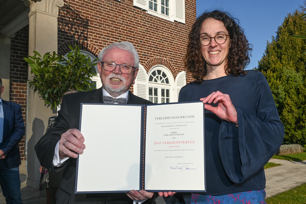 Wiesbaden(pm). . Karl-Heinz Stadtler ist so etwas wie das Gedächtnis seiner Gemeinde: Als Vorsitzender des Förderkreises Synagoge in Vöhl lenkt der 70-Jährige den Blick seiner Mitmenschen auf die Lebensgeschichten der Jüdinnen und Juden, die einst in Waldeck-Frankenberg lebten, erforscht ihre Schicksale und engagiert sich für ihr Andenken. Angela Dorn, Hessische Ministerin für Wissenschaft und Kunst, hat Karl-Heinz Stadtler heute für seine herausragenden Leistungen für das Gemeinwohl das Verdienstkreuz am Bande des Verdienstordens der Bundesrepublik Deutschland überreicht. „Im Sommer 2021 organisierte der Förderkreis um Karl-Heinz Stadtler einen Kunstwettbewerb mit dem Titel ,Erinnern – Wachen – Erleben‘. Diese drei Worte fassen gut den außergewöhnlichen Einsatz zusammen, mit dem Herr Stadtler die Region bereichert“, so Wissenschafts- und Kunstministerin Angela Dorn. „Erinnerung, Wachsamkeit, Mitdenken durch intensive Erlebnisse sind wichtig – um