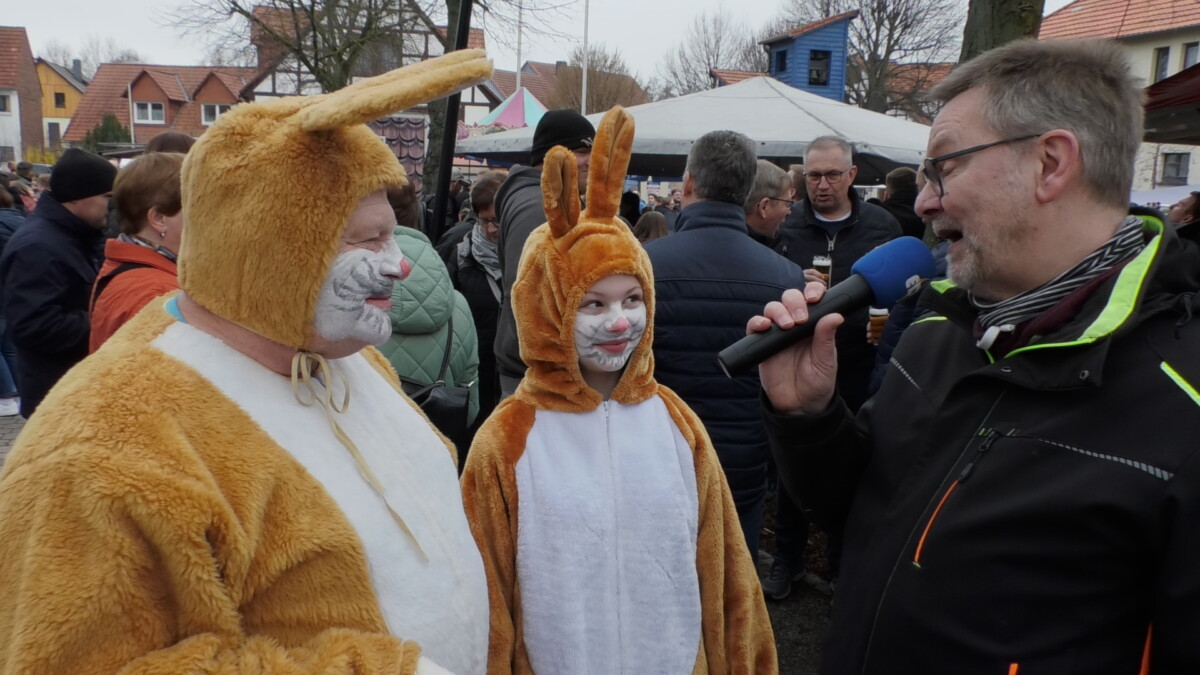 Der Förderverein der evangelischen Kindertagesstätte verkaufte Kaffee und Kuchen. Der Erlös wird für Anschaffungen der Kita verwendet. Das Platzkonzert mit dem Spielmanns- und Musikzug der Freiwilligen Feuerwehr Adorf durfte auch nicht fehlen. Für die Kleinen drehte ein Kinderkarussell seine Runden. Die Organisatoren hatten großen Wert auf Stände und Aussteller aus der Region gelegt, so gab Schalen und Töpfe, Seife, Textilien, Taschen, Marmelade und Honig, dazu Kinderspielzeug und Wein an den Verkaufsständen. Und auch für Essen und Trinken war gesorgt: Die LSG Vasbeck betrieb den Getränkestand und Spezialitäten vom Grill, Schepperlinge, Crêpes, Popcorn oder Spiralkartoffeln. Höhepunkt für Klein und Groß war der Auftritt vom Osterhasen Hans Hiemer mit Enkelin Anna-Lisa. Seit Jahren verteilt „Osterhansi“ bunte Eier und Süßigkeiten an die Kinder auf dem Ostermarkt. Auch der Bürgermeister und der Ortsvorsteher wurden mit einem Ei bedacht , traditionell ist es immer ein rotes Ei.