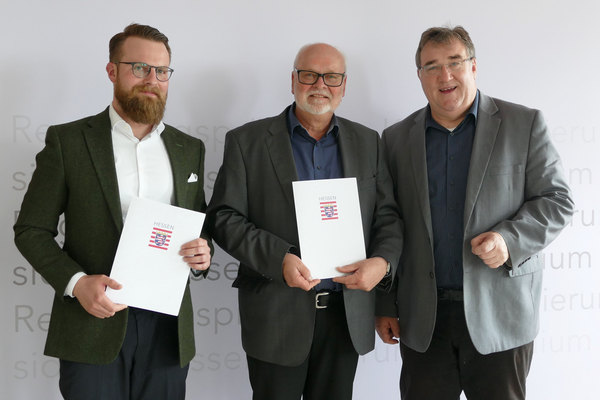 Kassel(pm). Bei schwierigen Fragen oder Konflikten im Jagdrecht bedient sich die Obere Jagdbehörde des Landes Hessen der Hilfe sachkundiger, neutraler Personen – der sogenannten Jagdberater. Peter M. Seibert (Biebertal) und Dr. Jan F. Hellwig (Wetzlar) wurden heute von Regierungspräsident Mark Weinmeister erneut für die Dauer von vier Jahren als Jagdberater berufen. Peter M. Seibert unterstützt die Obere Jagbehörde, die beim Regierungspräsidium (RP) Kassel mit hessenweiter Zuständigkeit angesiedelt ist, bereits seit 2015. Dr. Jan F. Hellwig ist seit 2019 als stellvertretender Jagdberater für das RP Kassel tätig. „Aufgrund Ihrer ausgewiesenen Fachkenntnis freue ich mich, dass wir Sie für weitere vier Jahre als sachkundige Spezialisten für diese verantwortungsvolle Position gewinnen konnten“, sagte Regierungspräsident Mark Weinmeister bei der Übergabe der Benennungsurkunden in Kassel.