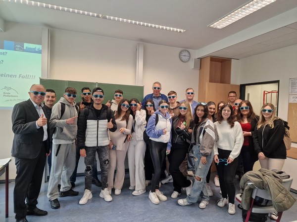 Landrat Rüther berichtete an diesem Morgen vom Kreistag und den Kommunen, den Aufgaben der Kreisverwaltung, eines Landrates, der Kreispolizeibehörde und stellte sich anschließend auch den interessierten Fragen der jungen Menschen. Diese beschäftigten sich u.a. mit den Herausforderungen an ihren Wunschberuf als Erzieherinnen und Erzieher, dem Fachkräftemangel und dem ÖPNV – speziell mit Alternativen für kleinere Orte. Welche Aufgaben im Alltag tatsächlich von einer Kreisverwaltung erledigt werden, verwunderte und erstaunte jeden im Raum. „Dass sich die Mitarbeitenden um Führerscheinangelegenheiten kümmern, dafür aber die Personalausweise den Kommunen überlassen, dass wir BAföG auszahlen und sogar ein Museum betreiben, sind nur ein kleiner Bruchteil unserer Aufgaben“, erklärte Landrat Christoph Rüther.