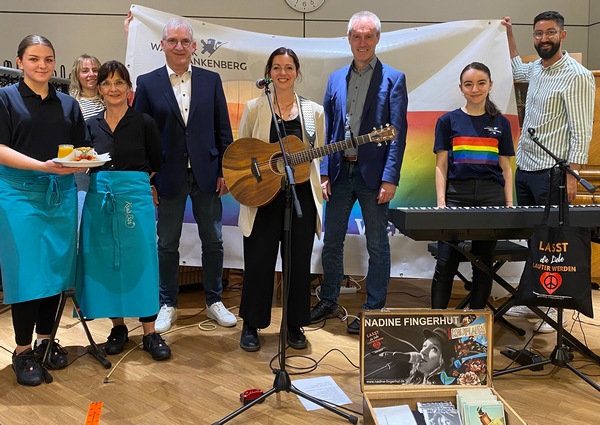 Kunstausstellung, Foto-Wettbewerb, Konzert, vielfältige Speisen: Zum bundesweitenAktionstag hatte das Team der Fachstelle Migration und Integration und des Fachdienstes Frauen und Chancengleichheit ein kleines Aktionsprogramm im Korbacher Kreishaus auf die Beine gestellt: Zur Mittagszeit lud die KreisBar zu einem vielfältigen Menü ein – einem Mix aus asiatischer, afrikanischer, karibischer, französischer und amerikanischer Küche. Begleitet wurde die Pause von Musik der regionalen Künstlerin Nadine Fingerhut, die in ihren Songs auch ein flammendes Plädoyer für Menschlichkeit und gegen Hass vertritt. Weiterhin wurden die Ergebnisse einer kleinen Fotoaktion ausgestellt, bei der alle Mitarbeitenden des Landkreises zuvor Bilder zum Thema „Vielfalt am Arbeitsplatz“ einreichen konnten.