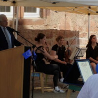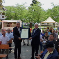 Thomas Firmenich, Bürgermeister von Frankenbergs gleichnamiger Partnerstadt in Sachsen, griff den Impuls in seinem Grußwort direkt auf. „Auch im Krieg Verbindungen in die Ukraine zu knüpfen, das hat Weitsicht. Wer diesen Schritt heute tut, der manifestiert, dass er wirklich ein Europäer ist und für ein Europa der Zukunft arbeitet. Gratulation für diese besondere Auszeichnung, auch im Namen der anderen Partnerstädte.“ Glückwünsche und lobende Worte für das Engagement Frankenbergs für die europäische Verständigung fanden auch die anderen Politikerinnen und Politiker aller Ebenen in ihren Grußworten. Es sei wichtig, dass die Deutschen aktuell als Demokratie zusammenstehen, vertrat der Europaparlamentarier Michael Gahler. „Um die Ehrenplakette zu erhalten, da gehören besondere Leistungen dazu.“ Diese seien speziell durch das Engagement von Bürgermeister Heß in Sachen Europeade und durch die Partnerschaftsvereinigung erbracht worden.