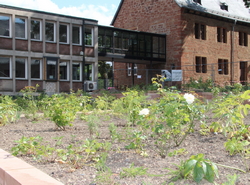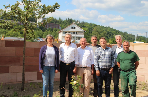 Der Leiter des städtischen Fachbereichs Stadtentwicklung, Umwelt und Finanzen, Karsten Dittmar, ergänzte: „Die beauftragten Unternehmen haben hier in Rekordzeit den Innenhof zum Rosen-, Beeren-, Stauden- und Obstgarten umgestaltet. So konnte der 1. Bauabschnitt mit hohen Förderquoten abgewickelt werden.“ Die Gartenelemente sind terrassenförmig angelegt und mit barrierefreien Wegen durchzogen. Ein Brunnenelement und Ruhebänke laden zum Verweilen ein. Als Abgrenzung in Richtung Uferstraße ist eine rund zwei Meter hohe Sandsteinmauer entstanden. Die Steine dafür stammen aus einem Steinbruch in der Pfalz, waren im Vorfeld mit der Denkmalbehörde abgestimmt und passen farblich gut zum Klosterbau.