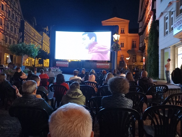 Bad Wildungen(pm). Viele Gäste strömten zum Open-Air-Kino in der Bad Wildunger Altstadt. Bei warmen Temperaturen startete der Film „Ein Mann Namens Otto“ um 22.00 Uhr. Der Film mit Tom Hanks fesselte über 200 Kinobegeisterte bis nach Mitternacht. Bereits einen Tag zuvor begeisterte Rüdiger Brinkmann und seine Band „Kollege Herz“ mit Eigenkompositionen über 30 Besucher im Ratskeller. Neben der Musik beeindruckte auch das Kellergewölbe unter dem Rathaus sowie die tolle Akustik. Für die vielen Initiatoren der Aktionswoche „Ab in die Mitte!“ ein toller Erfolg, da aufgrund des Wetters die geplante „Afterworkparty“ in der „Brunnenstraße nicht wie geplant stattfinden konnte. Durchgeführt werden konnte der Siebdruck- Workshop des Jugendhauses in der „Brunnenstraße 34. Entstanden sind individuell gestaltete Einkauftaschen mit Altstadtmotiven.
