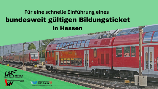 Darmstadt(pm). Die Stimmen für ein gerechtes und bezahlbares Bildungsticket im öffentlichen Personennahverkehr (ÖPNV) in Hessen werden lauter. Angesichts der bisher ausbleibenden Resonanz von Politik und Verkehrsverbünden auf das kürzlich veröffentlichte Positionspapier, haben sich die hessische Landesschülervertretung, LandesAStenKonferenz und PRO BAHN entschieden, eine Online-Petition zu starten. Das Positionspapier, das am 31. August 2023 veröffentlicht wurde, unterstreicht die Notwendigkeit eines Bildungstickets im ÖPNV zum Preis von 19 € im Monat. Es soll finanzielle Entlastung für Menschen auf Bildungswegen bieten und gleichzeitig umweltfreundliche Mobilität fördern. Trotz dieser klaren Forderungen fand das Positionspapier bislang nicht das erhoffte Gehör bei den politischen Entscheidungsträgern und Verkehrsverbünden.