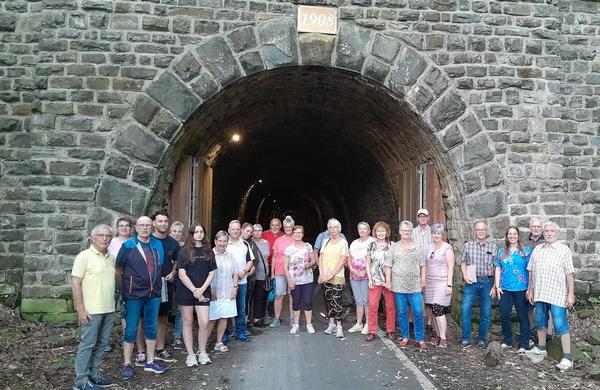 Allendorf-Bromskirchen(pm). Die heimische Landtagsabgeordnete Dr. Daniela Sommer hatte für den Start der diesjährige Sommertour unter dem Motto „Lost Places – verlassen – vergessen – verwunschen – verschwunden“ nach Allendorf-Bromskirchen eingeladen. Die heimischen Landtagsabgeordnete sagt zu ihrer Idee der diesjährigen Sommertour: „Ihren Charme verdanken die Lost Places dem Zahn der Zeit, der an ihnen nagt, wodurch die Gebäude oft baufällig sind, Plätze verlassen oder verschwunden sind. Es gibt eine Vielzahl an aufgegebenen Orten und Plätzen. Immer wieder ist es die Schönheit, die Einzigartigkeit des Verfalls, die Historie oder die surreale Umgebung, die an jenen Orten vorherrscht, die begeistert.“ Bei der Tour in Allendorf-Bromskirchen standen gleich mehrere Lost Places im Fokus: Zunächst haben sich die Sommertourgäste mit der Landtagsabgeordneten Dr. Daniela Sommer über das Bromskirchener Eisenbahnviadukt, das über den Linspherbach und den Mühlengraben führt, informiert und sich den sogenannten „Schlund“, den ehemaligen – ca. 300 Meter langen – Bahntunnel der 1908 gebaut und für den Rad- und Wanderweg asphaltiert und beleuchtet wurde, angeschaut. Rainer Gasse, dessen Vater bei der Bahn arbeitete, erzählte die Geschichte sowie persönliche Anekdoten dazu.