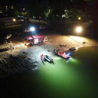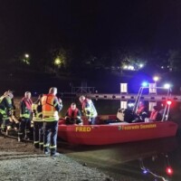 Diemelsee(Jens Figge). Wer am Samstagabend in Heringhausen am Diemelsee spazieren ging, dem bot sich ein ungewöhnliches Bild: Blaulicht erleuchtete den Parkplatz des Strandbads Heringhausen, auf dem sich über siebzig Rettungskräfte von Feuerwehr, DLRG und Johannitern versammelt haben. Allerdings handelte es sich hier nicht um einen echten Notfall, sondern um eine Großübung. Die Mitglieder der verschiedenen Hilfsorganisationen haben unter der Leitung der DLRG am Diemelsee den Einsatz bei Dunkelheit geübt. Einsätze bei Nacht bieten durch die eingeschränkten Sichtbedingungen und niedrige Temperaturen besondere Herausforderungen. Deshalb müssen sie regelmäßig geübt werden, damit alle Handgriffe auch im Taschenlampenlicht sitzen. Ein weiterer Fokus der Übung war die Zusammenarbeit zwischen Feuerwehr, DLRG und Johannitern aus NRW und Hessen, die normalerweise für sich üben, aber im Katastrophenfall alle gemeinsam arbeiten.