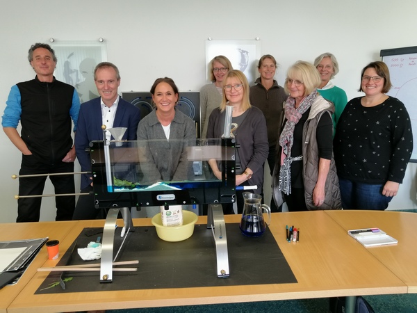 Landrat Jürgen van der Horst ließ es sich nicht nehmen, persönlich bei der Fortbildung vorbeizuschauen, auf der sich Mitarbeitende des Geopark-Projektbüros mit der Anwendung und den Möglichkeiten des geowindows vertraut machten. Er konnte sich überzeugen, dass die Fördermittel bestens angelegt sind. „Bereits auf einen kurzen Blick hin wird deutlich, dass sich die Anschaffung dieses Lehr- und Lernmittels gelohnt hat“, lobte er die Initiative von Geopark-Projektbüroleiterin Kim Peis und ihren Mitstreiterinnen und Mitstreitern zur Nutzung des geowindows. Wenn eine Wissensvermittlung so interaktiv und partizipativ wie hier von Statten gehe, Kinder und Jugendliche den „Unterricht“ selbst mitgestalten könnten, sei eine besonders hohe Nachhaltigkeit gegeben. Das geowindow kann ab dem Jahr 2024 aktiv zum Einsatz kommen, und zwar sowohl im schulischen Kontext als auch in der Erwachsenenbildung. Bis dahin sollen alle Geoparkführerinnen und Geoparkführer, aber auch Interessierte von potentiellen Anwendern wie Nationalpark, Naturparks oder Museen durch die Mitarbeitenden des Geopark-Projektbüros entsprechend fortgebildet worden sein.