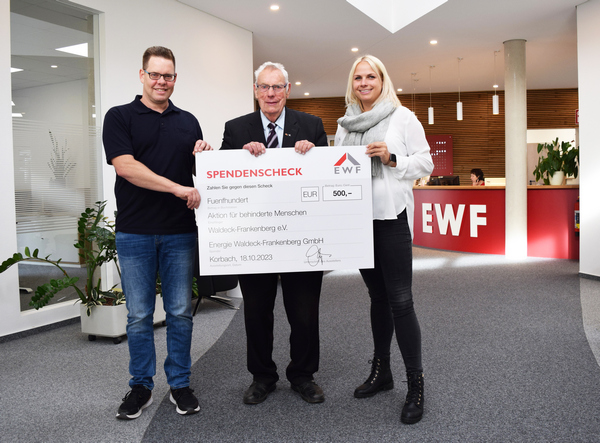 Seit 1978 engagiert sich die AfbM in Waldeck-Frankenberg für mehr Teilhabe von Menschen mit Handicap und wird vor allem in Fällen aktiv, wo staatliche Fürsorge und Hilfe aufgrund von Gesetzen und Vorschriften nicht möglich ist oder erst sehr spät erfolgt. Die AfbM lebt wie viele andere Vereine vom Ehrenamt und ist für die Umsetzung von Projekten auf Spenden und Erlöse aus Veranstaltungen angewiesen, entsprechend dankbar ist man für jede finanzielle Unterstützung. Oberst a. D. Jürgen Damm, der den symbolischen Spendenscheck als Erster Vorsitzender des Vereines entgegennahm: „Wir danken der EWF für ihre langjährige Unterstützung und die tolle Aktion für uns auf der Nightwork. Vor allem aber danken wir dem Unternehmen für sein Engagement für die Inklusion behinderter Menschen in die Arbeitswelt. Denn dabei geht es erst in zweiter Linie um eine sinnstiftende Betätigungsmöglichkeit, sondern vor allem um soziale Teilhabe.“ Die AfbM lädt alle Leserinnen und Leser bereits jetzt herzlich zum diesjährigen Weihnachtsbaumschlagen am 2. und 3. Adventswochenende nach Vöhl-Basdorf ein. Auch in diesem Jahr wird wieder eine Tombola veranstaltet, bei der es attraktive Preise zu gewinnen gibt. Der Erlös aus dem Losverkauf kommt selbstverständlich vollständig der Vereinsarbeit zugute. Weitere Infos unter www.aktion-fuer-behinderte-menschen-wa-fkb.de.