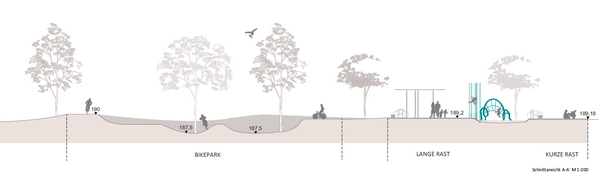 Die Voraussetzungen und der Standort seien optimal. „Der Mountainbike-Park wird an einem sehr stark frequentierten Radweg gebaut, und er ist weit genug entfernt vom Straßenverkehr“, bestätigt Bauamtsleiter Alexander Paul. Die vom Landschaftsarchitekturbüro „Schöne Aussichten“ aus Kassel konzipierte Freizeitanlage beinhalte neben einem Pumptrack – bestehend aus einem Rundkurs mit Wendungen, erhöhten Kurven und Wellen – einen zusätzlichen Rastplatz mit Spiel- und Klettermöglichkeiten für Kinder. „Damit sich das Ganze auch optisch harmonisch in das Gesamtbild der Ederauen einfügt, wird die 6000 Quadratmeter große Anlage mit unterschiedlichen Bäumen und Sträuchern großzügig bepflanzt“, kündigt Alexander Paul an. Mit dem Beginn der Arbeiten rechnet der Bauamtsleiter in einigen Tagen. „Wenn es das Wetter zulässt, wird der Bikepark samt des Rastparkplatzes im nächsten Frühjahr fertig sein.“ Bei der Gestaltung des auf die Bedürfnisse von Mountainbikern und Familien mit Kindern zugeschnittenen Areals legen die Nationalparkgemeinde und Planer besonderen Wert auf Natürlichkeit und Schonung von Ressourcen. Alexander Paul: „Es werden keine Beton- Kunststoffschalen oder ähnliches verbaut. Die komplette Fläche wird mit vorhandenem Bodenmaterial modelliert.“ Den Auftrag habe die Firma Klei aus Baunatal erhalten, ein auf Landschafts-, Sportstätten- und Straßenbau spezialisiertes Unternehmen.
