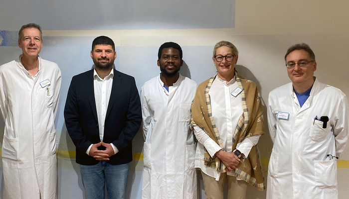 Und Erdogan Senlikoglu stieß damit bei seinem Arbeitgeber auf offene Ohren. Nach einem Vorstellungsgespräch mit den chirurgischen Chefärzten Dr. med. Arkadiy Radzikhovskiy und Dr. med. Oliver Schuppan waren diese gerne bereit, Herrn Ilogu zu unterstützen und in der Chirurgie weiter auszubilden. Gemeinsam entwickelte man eine Strategie und schuf im Haus die notwendigen Voraussetzungen für Ilogus Einsatz. Die organisatorische Arbeit und die Kontakte mit den Behörden übernahm Erdogan Senlikoglu: „Die verschiedenen Anmelde- und Genehmigungsverfahren waren zeitaufwendig. Onyekachis Geschichte ist ein Beispiel dafür, wie komplex die Wege zu einem Arbeitsplatz sind, trotz einer gültigen – da in der EU erworbenen – Approbation. Es zeigt auch die Bedeutung von Unterstützung, Empathie und Zusammenarbeit, wenn es darum geht, Barrieren zu überwinden und gemeinsame Ziele zu erreichen.“ Seit Mitte Oktober ist nun alles geregelt, und das Kreiskrankenhaus hat Onyekachi Chiedozie Ilogu direkt unter Vertrag genommen. Er arbeitet nun als Assistenzart in der Chirurgie und beginnt seine Facharzt-Weiterbildung. Ilogu hat sich mittlerweile in Frankenberg und im Kollegenkreis eingelebt: „Ich bin sehr froh über die Möglichkeiten, die sich mir hier durch erfahrene Kollegen und moderne Geräte für die Basisweiterbildung Chirurgie bieten. Ich werde je 6 Monate in der Orthopädie und Unfallchirurgie sowie der Allgemein- und Viszeralchirurgie eingesetzt. Auch die Abteilung Anästhesie- und Intensivmedizin werde ich kennenlernen. Um meine Sprachkenntnisse weiter zu verbessern, führe ich viele Gespräche mit unseren Patienten. Das stärkt nicht nur die gemeinsame Kommunikation, sondern ist auch ein sehr gutes Training. Die Unterstützung durch das Krankenhaus und insbesondere Erdogan Senlikoglu haben mir sehr geholfen. Dank ihnen kann ich hier nun endlich auch finanziell auf eigenen Beinen stehen. Ich bin auch Gott, meiner Familie und meinen Freunden zu Dank verpflichtet, die mich zu jeder Zeit unterstützt haben.“