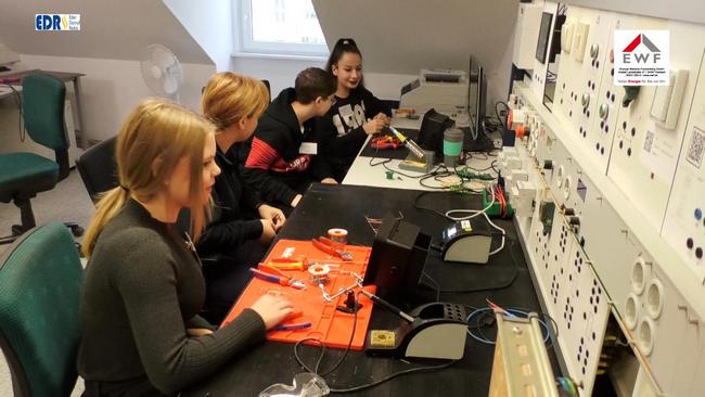 Die Teilnehmerinnen von „Girls4MINT“ in der Region Korbach kamen von der Mittelpunktschule Goddelsheim und der Louis-Peter-Schule in Korbach. Sie erlebten beim Kooperationspartner, der Energie Waldeck-Frankenberg in Korbach, ein abwechslungsreiches Programm rund um MINT-Themen und Ausbildungsberufe in den Bereichen Elektrotechnik und Informatik. Die Veranstaltung stand unter dem übergeordneten Thema „autarke Versorgung eines Wohngebäudes mit Energie“. Aufgeteilt in kleine Gruppen nahmen alle Mädchen an insgesamt vier Workshops teil. Im Themenfeld Hausanschlusstechnik lernten sie die Funktionsweise von Hausanschlusskästen und Zähleranschlusssäulen kennen und installierten selbst eine Unterverteilung. Im Workshop Informatik konnten sie erste Erfahrungen im Programmieren einer speicherprogrammierbaren Steuerung (SPS) sammeln und erhielten Einblicke in die Welt von Smart Home und Heimautomation. Wie kann ein Haushalt autark mit erneuerbarer Energie versorgt werden? Mit dieser Frage beschäftigten sich die Teilnehmerinnen im dritten Workshop. Handwerkliches Geschick bewiesen sie in der vierten Gruppenarbeit beim Löten einer binären Uhr als Beispielverbraucher im Haushalt. Am Ende der Woche wurden alle vier Workshop-Ergebnisse in einem Beispielhaushalt kombiniert.