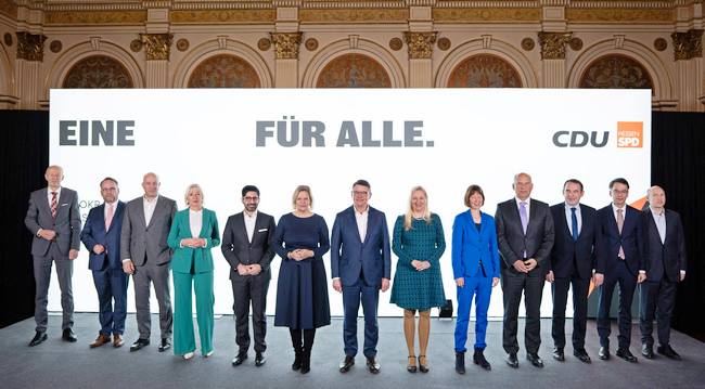 Wiesbaden(pm). Der Landesvorsitzende der CDU Hessen, Ministerpräsident Boris Rhein, hat heute gemeinsam mit der Landesvorsitzenden der SPD Hessen, Bundesministerin Nancy Faeser, sein neues Kabinett für die 21. Wahlperiode im Hessischen Landtag in Wiesbaden vorgestellt. Dazu sagte Ministerpräsident Boris Rhein: „Wir schlagen diese Woche in Hessen ein neues Kapitel auf und geben den Startschuss für unsere christlich-soziale Koalition und das neue hessische Kabinett. Wir haben als CDU ein breites Team aufgestellt – mit Kabinettsmitgliedern aus dem Landtag, aus dem Bundestag, von der kommunalen Ebene und profilierten Experten. Gemeinsam mit unserem Koalitionspartner werden wir zeigen: Diese Regierung ist progressiv, pragmatisch und partnerschaftlich. Progressiv, indem wir bei den zentralen Fragen anpacken und nicht abwarten; pragmatisch, weil wir das Land führen und keine schrillen Debatten; partnerschaftlich, weil wir auf Augenhöhe koalieren und Politik mit den Menschen machen und nicht gegen sie.“