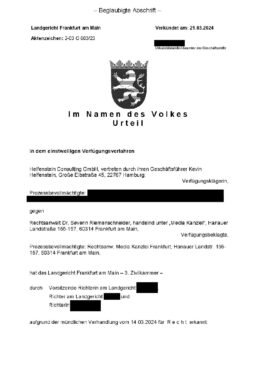 LG Frankfurt Urteil Online Coaching-geschwärzt