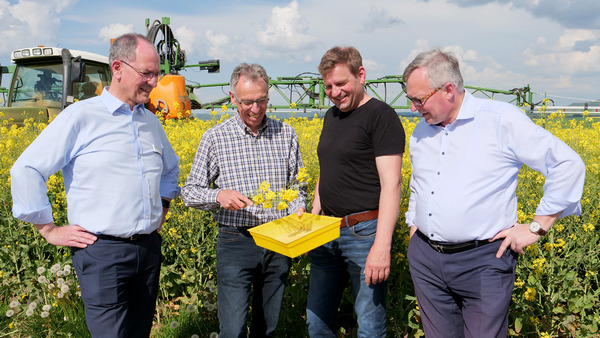 Die hessische Landesregierung beabsichtigt bis 2030 den Einsatz von Pflanzenschutzmitteln um 30% im Vergleich zum Referenzzeitraum 2015-17 zu reduzieren. Andreas Sandhäger, Direktor des Landesbetrieb Landwirtschaft Hessen (LLH) und der Gießener Regierungspräsident Dr. Christoph Ullrich besuchten kürzlich den Ackerbaubetrieb von Rainer Henz in Marburg-Moischt und tauschten sich über die Möglichkeiten aus, wie die beabsichtigten politischen Ziele zur PSM-Einsparung erreicht werden können und welche Herausforderungen damit verbunden sind.