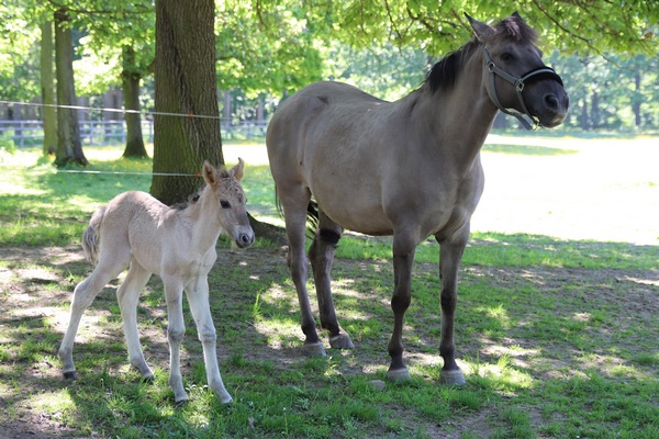 Edertal-Hemfurth(pm). Nachwuchs-Freuden im WildtierPark Edersee: Die Wölfin Noki hat bereits Ende April fünf männliche Wolfswelpen zur Welt gebracht. Fischotterdame Bernadette hat ebenfalls Ende April zwei Kleine geboren – einen Jungen und ein Mädchen. Und Sorraia-Stute Contessa hat an Himmelfahrt ein gesundes Hengst-Fohlen bekommen. Darüber hinaus gibt es auch aus der Greifenwarte Edersee eine freudige Nachricht: Mitte Mai ist ein kleines Steppenadlerweibchen aus eigener Zucht geschlüpft. „Wie auch in der Vergangenheit wollten wir den Kleinen und ihren Müttern erst einmal ein wenig Zeit geben, damit sich alles einspielen kann, bevor wir die schönen Neuigkeiten kommunizieren“, sagt Tierpflegerin Valentina Buchauer. „Nun ist der Nachwuchs mit etwas Glück schon zu sehen und die Besucherinnen und Besucher können sich auf Balgereien bei den Wolfswelpen, erste Schwimmübungen bei den kleinen Fischottern, ein aufgewecktes Hengstfohlen und einen kleinen Steppenadler mit Federflaum freuen.“