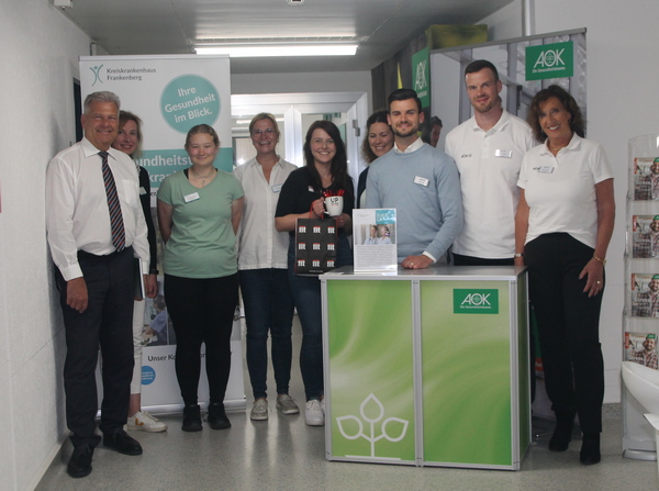 Frankenberg(pm). Zum zweiten Mal fand der Gesundheitstag für Mitarbeitende des Kreiskrankenhauses Frankenberg statt und stieß auf großes Interesse. Den ganzen Tag über besuchten zahlreiche Mitarbeitende die vielfältigen Informations- und Mitmachstände, um sich über Gesundheitsthemen zu informieren und aktiv daran teilzunehmen. „Es ist uns ein Anliegen, dass auch die Gesundheit unserer Mitarbeitenden nicht zu kurz kommt. Dieser Gesundheitstag soll ein Zeichen dafür sein, dass wir ihre Bedürfnisse ernst nehmen und ihre Gesundheit fördern wollen“, erklärt Margarete Janson, Geschäftsführerin des Kreiskrankenhauses Frankenberg. Die Veranstaltung bot eine breite Palette an Themen und Aktivitäten. An den Ständen des Kreiskrankenhauses informierten Experten über, Arbeitssicherheit und Gewaltprävention und Händedesinfektion. Auch das innerbetriebliche Fortbildungsprogramm sowie die Mitarbeitervorteile im Krankenhaus wurden ausführlich vorgestellt. „Wir freuen uns über das große Interesse und die positive Resonanz. Es zeigt, dass unser Engagement für die Gesundheit der Mitarbeitenden geschätzt wird“, sagt Björn Hesse, Mitglied des Betriebsrates und Mitorganisator des Gesundheitstags, während er die belebten Stände überblickt.Neben den internen Fachbereichen waren die AOK, die Lahn-Apotheke Gießen sowie das Fitnessstudio CleverFit mit ihren Angeboten vertreten. Besonders beliebt war die „aktive Mini-Pause“, die angeboten wurde. Die Mitarbeitenden wurden an ihren Arbeitsplätzen besucht und zu einer zehnminütigen Bewegungseinheit eingeladen. Diese kleine Bewegungspause war eine willkommene Abwechslung für das Herz-Kreislauf-System und die Muskulatur. „Der Gesundheitstag soll nicht nur gesundheitliche Aspekte fördern, sondern auch Spaß machen und den Zusammenhalt sowie das abteilungsübergreifende Kennenlernen unterstützen. Hier in Frankenberg legen wir großen Wert auf das starke wir“, betont Carina Naumann.