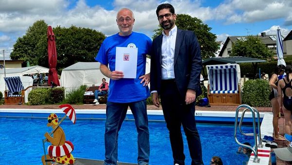 Diemelsee(pm). Am Samstag, eröffnete Wirtschaftsminister Mansoori das diesjährige 24-Std.-Schwimmen im Freibad Vasbecks in Diemelsee. In diesem festlichen Rahmen überreichte der stellvertretende Hessische Ministerpräsident einen Förderbescheid aus Lottomitteln, der gezielt zur Unterstützung lokaler Sportinitiativen in der Region bestimmt war. Der Förderbescheid belief sich auf insgesamt 4.400 Euro. Das 24-Std.-Schwimmen, ein alljährliches Highlight im Veranstaltungskalender von Diemelsee, zog Schwimmerinnen und Schwimmer aus nah und fern an. Es symbolisierte nicht nur sportliche Ausdauer, sondern auch den Gemeinschaftssinn und die aktive Teilnahme am öffentlichen Leben. Minister Mansoori betonte: „Solche Veranstaltungen sind von großer Bedeutung für die Förderung des Breitensports und die Stärkung unseres gesellschaftlichen Zusammenhalts. Sie bieten Menschen jeden Alters die Möglichkeit, ihre sportlichen Fähigkeiten zu zeigen und neue Freundschaften zu knüpfen.“