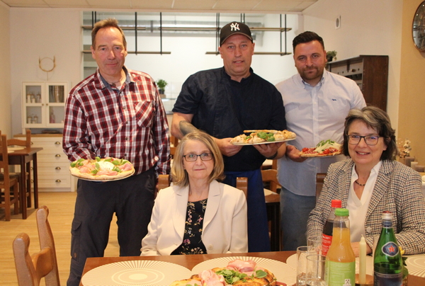 Frankenberg(pm). In der Verlängerung der Frankenberger Fußgängerzone, in der Ritterstraße, eröffnet am 13. Juli, ein neuer Gastronomiebetrieb – die Pizzeria Del Sud (ital.: „Aus dem Süden“). Die Gäste erwartet dort dann echt italienische Pizza, Focaccia, Wein und weitere Spezialitäten. Bürgermeisterin Barbara Eckes und Wirtschaftsförderin Evelin Jacobs haben den Betrieb vorab besucht, einiges vom Konzept erfahren und erste kulinarische Kostproben erhalten. „Ich bin dankbar für Ihren Mut, etwas zu wagen“, erklärte die Bürgermeisterin gegenüber den Betreibern. Eine Geschäftseröffnung sei immer auch ein Abenteuer. Davide Russo, Eckehard Guntermann und Marco Tortuccio betreiben das Restaurant gemeinsam. Das Haus in der Ritterstraße 3 hat Russo zu diesem Zweck gekauft, gemeinsam wurde in den letzten Wochen umgebaut und renoviert. Der gelernte Pizzabäcker war zuletzt als Baggerfahrer aktiv, seine Familie hat in Frankenberg aber bereits Gastro-Erfahrung. Russos Onkel hat vor Jahren das Michelangelo am Untermarkt, später die Vinobar am Obermarkt betrieben.