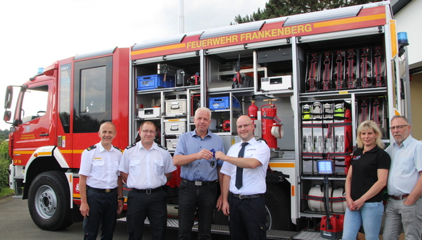 Röddenau(pm). Der Feuerwehr im Frankenberger Stadtteil Röddenau steht jetzt offiziell ein neues Löschgruppenfahrzeug zu Verfügung. Das LF10 mit neun Sitzen wurde vergangenen Donnerstag feierlich übergeben. In Vertretung für Bürgermeisterin Barabara Eckes händigte Stadtrat Holger Kreis symbolisch die Fahrzeugschlüssel an Wehrführer Jan Bornscheuer aus. Tatsächlich ist das Fahrzeug schon seit letztem Dezember im Einsatz. Bornscheuer dankte dem Land Hessen und der Stadt Frankenberg, speziell dem zuständigen städtischen Fachbereich 3, sowie Stadtbrandinspektor Martin Trost für die Beschaffung und Finanzierung des LF10. Der Gesamtwert des Fahrzeugs beläuft sich auf 287.000 Euro. 66.000 Euro davon hat das Land Hessen im Rahmen einer Förderung übernommen. Durch die Beteiligung an einer Landesbeschaffungsaktion konnten zusätzlich Kosten eingespart werden.