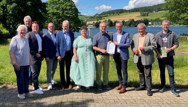 Diemelsee-Heringhausen(pm). Der Landkreis Waldeck-Frankenberg fördert den Campingplatz „Goldbreite“ mit rund 160.000 Euro. Landrat Jürgen van der Horst überreichte gemeinsam mit dem Fachdienst Dorf- und Regionalentwicklung den Förderbescheid in der vergangenen Woche an den Betreiber des Campingplatzes Gerd Fieseler. Seit 1962 besteht der Campingplatz „Goldbreite“ in Heringhausen am Diemelsee. Nun hat sich der Betreiber Gerd Fieseler eine Neukonzeptionierung überlegt, um den wachsenden Anforderungen im Campingtourismus und der steigenden Nachfrage auf Dauer gerecht zu werden. Unterstützt wird das Vorhaben mit Geldern vom Land Hessen und der Europäischen Union mit einer Förderung von 25 Prozent. Die Mittel werden vom Landkreis Waldeck-Frankenberg an den Campingplatz weitergeleitet. „Der Ausbau und die Modernisierung des Campingplatzes in Diemelsee sind wichtig für die touristische Infrastruktur unserer Region. Mit den vorgesehenen Maßnahmen wird die Attraktivität für Besucher gesteigert und schafft gleichzeitig ein zukunftsfähiges Angebot, das den wachsenden Ansprüchen der Camper gerecht wird“, betonte Landrat Jürgen van der Horst bei der Übergabe des Bescheids.