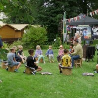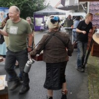 Ellershausen(od). Vier Tage Festival – Feeling in Ellerhausen begannen mit Open-Air-Kino am Donnerstag: „Die Unbeugsamen“, ein Dokumentarfilm über die Geschichte der Politikerinnen in der Bonner Republik. Eröffnet wurde das Festival dann am Freitag durch Franz Josef Zimmer von Kuhkraft. Etwas Woodstock, etwas Monterey-Festival Feeling kam dann beim Live-Konzert der Gruppe Nomadenpuls und der Steven Stealer Band aus Bad Wildungen auf und die Besucher tanzten ausgelassen vor der Bühne und ließen sich auch nicht vom Regen abhalten. Der Samstag begann sportlich mit Afro-Zumba und Hatha-Yoga. Ab 13 Uhr öffneten dann die Stände vom Archeverein Kellerwald, der Buchhandlung Jakobi, Falkenhof Strothe, Bauerneis aus Laisa, NABU und die Stände mit arabischen Spezialitäten, Ofenkuchen, einem Weinstand, Burger aus Frankenberg, Wurst aus Basdorf aber auch der klassische Bartwurststand und Spezialitäten aus der Ziegenmilch vom grünen Hügel. Auch das Mitmach-Theater für Kinder fand enormen Zuspruch. Über Chancen und Risiken der KI referierte Prof. Dr. Mike Schwarz aus Viermünden und über die „Parlamenten des Zufalls“, die Bürgerräte berichtete der Politikwissenschaftler Markus Möller aus Volkmarsen.