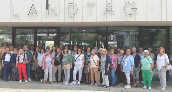 Für die Gruppe gab es eine Einführung in die Funktions- und Arbeitsweise des Landtags und die Frauen verfolgten von der Tribüne aus einen Teil einer Plenarsitzung. Auch vier Abgeordnete des Landtags stellten sich den Fragen der Teilnehmerinnen. Claudia Ravensburg (CDU) und Dr. Daniela Sommer (SPD) hatten die Übernahme der Fahrtkosten durch die Landtagsverwaltung organisiert und sich auch für die Fragerunde zur Verfügung gestellt. Auch die Abgeordneten Wiebke Knell (FDP) und Daniel May (B90/Grüne) nahmen sich an diesem Tag Zeit für die Gruppe und schlossen sich der Gesprächsrunde an.