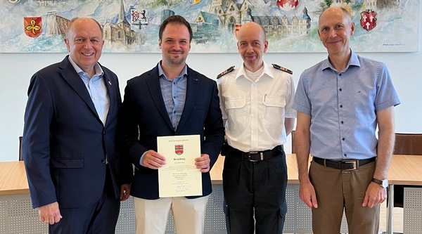 Kreis Paderborn(krpb). Im Notfall zählt jede Sekunde. Daher begrüßt der Kreis Paderborn nun einen neuen hochqualifizierten Notfallmediziner in den Reihen seiner leitenden Notärzte: Dr. med. Thorsten Dahm. Mit seiner Expertise und Erfahrung soll er eine zentrale Rolle bei Einsätzen mit Unglücksfällen sowie Großeinsätzen spielen, um eine effiziente medizinische Versorgung zu gewährleisten. Der 33-Jährige lebt in Borchen und hat sein Studium der Humanmedizin an der Ruhr-Universität Bochum absolviert. „Diese verantwortungsvolle Aufgabe übertragen wir Dr. Thorsten Dahm mit großer Freude. Es braucht Menschen die bereit sind, Verantwortung zu übernehmen“, betonte Landrat Christoph Rüther bei der Übergabe der Bestellungsurkunde. Dr. Thorsten Dahm bringt nicht nur einen umfangreichen Erfahrungsschatz, sondern auch zahlreiche Zusatzqualifikationen wie die der Notfallmedizin mit.