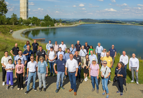 Nach einer gut einstündigen Wanderung, bei der der Austausch unter den Teilnehmenden und das Networking im Mittelpunkt standen, endete der nachmittägliche Teil des Sommerfests je nach Wunsch bei der Mühlenkopfschanze oder bei der neuen Sehenswürdigkeit Skywalk. Arndt Brüne, einer der Geschäftsführer der Skywalk-Betreibergesellschaft berichtete ausführlich und kurzweilig über das Entstehen des Projekts, von der ersten Idee über die Umsetzung bis hin zur Eröffnung. „Wir sind blauäugig in das Projekt gegangen und haben es dennoch geschafft. Warum? Weil wir von Anfang bis zum Ende an das Projekt geglaubt haben und uns auch von Schwierigkeiten nicht vom Weg haben abbringen lassen“, so Brüne. Wer es sich traute, konnte die Hängebücke anschließend ausprobieren oder die weltweit größte Schanze, in der Kategorie der Großschanzen, besichtigen.