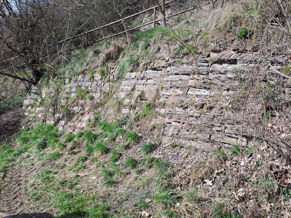 Der Adorfer Bänderschiefer ist keine verwitterte Mauer, wie ein erster Blick vermuten lässt. Vielmehr entstand die außergewöhnliche Bänderung des Gesteins im Zeitalter des Oberdevons vor ca. 380 Millionen Jahren in einem relativ flachen Meer. Seine rhythmische Streifung zeigt anschaulich, wie sich Ablagerungsbedingungen durch globale Klimaschwankungen verändern. Dunkle Streifen bedeuten warme, durch Algenblüten schlecht mit Sauerstoff versorgte und kalkfreie Meeresbereiche, helle Streifen eine kältere Phase. Diese Schichten sind sehr feinkörnig und kalkreich.
