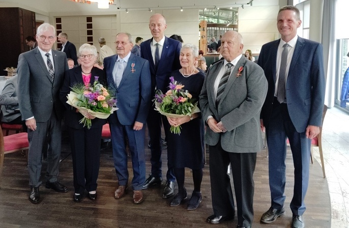 Willingen(od). Am 13. September 2024 wurden Reinhold Lohmar und Friedrich „Frieder“ Koch das Bundesverdienstkreuz am Bande vom Bundespräsidenten Frank Walter Steinmeier verliehen. Überreicht wurden die Orden von Armin Schwarz, Hessischer Minister für Minister Kultus, Bildung und Chancen. Laudatoren waren Thomas Trachte, Bürgermeister von Willingen/Upland und Erster Kreisbeigeordneter Karl-Friedrich Frese. Reinhold Lohmar und Friedrich „Frieder“ Koch bringen es zusammen auf 87 Jahren in der Kommunalpolitik und haben viel bewegt. 1981 zog Reinhold Lohmar für die SPD in die Willinger Gemeindevertretung ein und wurde nach vier Jahren in den Gemeindevorstand gewählt, dem er 36 Jahre angehörte. Lohmar war 5 Jahre Erster beigeordneter der Gemeinde Willingen. war bei der Agentur für Arbeit beschäftigt, später Geschäftsführer des Jobcenters Waldeck-Frankenberg. Der pensionierte Geschäftsführer des Jobcenter Waldeck-Frankenberg engagierte sich auch im Kuratorium des Gesamtverbands Upland und im Behindertenbeirat. Friedrich “ Frieder“ Koch,der gelernte Bankkaufmann war bis zum 70. Lebensjahr Vermögensberater. Koch zog 1974 in der Ortsbeirat Bömighausen ein und war von 1985 bis 2001 Ortsvorsteher. Von 1989 bis 2001 war er für die FDP Mitglied der Gemeindevertretung Willingen ein, davon 20 Jahre im Gemeindevorstand. Beide Ausgezeichneten erhielten 2009 den Ehrenbrief des Landes Hessen für ihr Engagement.