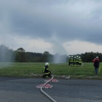 Oberorke(od). Dienstag Abend, der Vöhler Ortsteil Oberorke liegt noch im spätsommerlichen Sonnenlicht, Pferde werden von der Koppel geholt und Hunde ausgeführt. Um 18 Uhr 30 heulen plötzlich die Sirenen durch das Orketal, Einwohner und Hotelgäste werden aufgeschreckt. Brennt es? Nein, die Feuerwehren von Orke, Schmittlotheim, Buchenberg, Ederbringhausen, Kirchlotheim wurde zu einer Übung alarmiert. Unter der Einsatzleitung vom Vöhler Gemeindebrandinspektor Marco Amert über die Kameradinnen und Kameraden der Wehren einen angenommenen Großbrand im Reiterhof Freund. Unterstützt wurde die Übung von der Informations- und Kommunikationsgruppe (IuK) Korbach, die mit ihrem Einsatzleitwagen 2 (ELW 2) und dem Gerätewagen IuK (GW-IuK) auf dem Reiterhof Stellung bezogen hatten. Zudem wurde die Übung mit einer Drohne verfolgt und dokumentiert. Über 50 Einsatzkräfte übten die Personenrettung aus dem Reiterhof. Unter Atemschutz konnten alle vermissten Personen von den Einsatzkräften aus dem stark verrauchtem Gebäude gerettet werden. Andere Kräfte bauten eine Wasserversorgung auf: Aus der Orke wurde Wasser entnommen und über eine Strecke von 650 m und 60 Höhenmeter bis zur Brandstelle gepumpt. Gemeindebrandinspektor Marco Amert zeigte sich zufrieden mit dem Ablauf der Übung. Sein besonderer Dank galt dem Management vom Natur- und Wellnesshotel Freund und Reiterhof Freund, das sich bereit erklärt hatte die Großübung zu unterstützen.