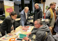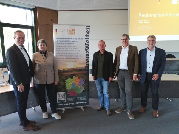 und Aufschlüsse erklären den Klimawandel aus erdgeschichtlicher Sicht“. Vertreterinnen und Vertreter der Geopark-Kommunen sowie der Geopark-Partner (Museen, Naturparks, Tourismusregionen) lauschten ihm ebenso interessiert wie die Geopark-Führerinnen und -Führer, die sich zahlreich zur Tagung im Korbacher Kreishaus eingefunden hatten. Vorab hatten sie Gelegenheit gehabt, bei einer Exkursion das Georg-Viktor-Turm-Panorama auf dem Korbacher Eisenberg kennenzulernen. Im Mittelpunkt der Regionalkonferenz standen weiterhin zwei wichtige Tagesordnungspunkte. Zum einen konnte Landrat Jürgen van der Horst den neuen Leiter des Geopark-Projektbüros im Team des Fachdienstes Umwelt und Klimaschutz willkommen heißen. Dr. Georg Bresser folgt auf Kim Peis, die sich beruflich verändert hat und nun als Klimamanagerin der Städte Medebach, Hallenberg und Winterberg tätig ist. Der neue Leiter des Projektbüros ist Geologe, der nach seiner Zeit als Wissenschaftlicher Mitarbeiter am Geologischen Institut der RWTH Aachen in die Öl- und Gasindustrie gewechselt hatte. Er war für