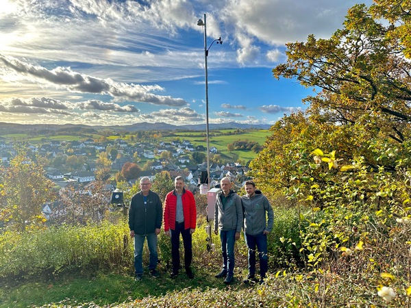 Braunshausen(pm). Es mag selbst alteingesessenen Bewohnern des kleinen Hallenberger Ortsteils Braunshausen überrascht haben, wie schön gelegen ihr Örtchen ist. Um einen kompletten Blick auf den Ort zu haben, musste man bisher die rund 50 Höhenmeter zur Kapelle hinauf – nun reicht ein Blick auf Handy oder Computer. Seit einigen Tagen schaut eine hochauflösende Webcam von der Kapelle auf Braunshausen hinab und zeigt die Landschaft rundherum im besten Licht. Der Blick geht über den Südwesthimmel vom Ante-Werk bei Somplar, den Höhen rund um Hallenberg bis zum Bollerberg bei Hesborn. Besonders beeindruckend sind die Aufnahmen, wenn eine Nebelschicht im Wehlenbachtal liegt und die Kirchturmspitze hinausschaut oder wenn zwischen Bollerberg und Ziegenhelle dichte Wolken hängen und Braunshausen in der Sonne liegt. Noch informativer wird das Bild, wenn man es in Kombination mit Wetterdaten betrachtet. So wurde zur Webcam auch eine professionelle Wetterstation angeschafft, die nun die 85. Wetterstation im Messnetz des Wetterportal Sauerland ist. Sie sendet alle fünf Minuten Daten zu Temperaturen in 2 m und 5 cm Höhe, zur Luftfeuchtigkeit und zum Luftdruck sowie zum Wind, Niederschlag und der Solarstrahlung. Die Daten werden im Webcambild eingeblendet. Sie lassen sich in vielfältiger Form auswerten und sind im Internet in vollem Umfang verfügbar.