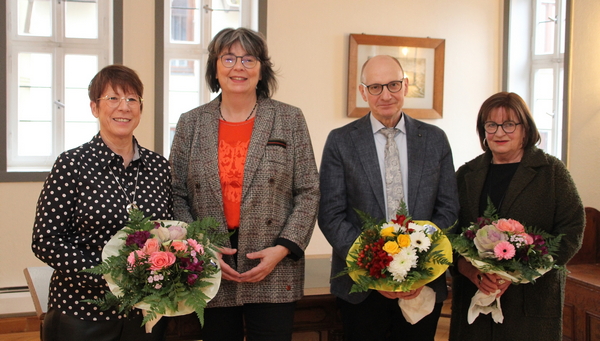 Frankenberg(pm). Gleich drei langjährige Mitarbeitende der Frankenberger Stadtverwaltung wurden jetzt im Rahmen einer Feierstunde von Bürgermeisterin Barbara Eckes in den Ruhestand verabschiedet. Auf beeindruckende 139 Jahre Berufserfahrung kommen Heidrun Bock, Iris Bornscheuer und Richard Engel gemeinsam. Sie hatten alle im Oktober ihren jeweils letzten Arbeitstag in der Verwaltung. Das Trauzimmer war feierlich dekoriert und bildete speziell für die langjährige Standesbeamtin Heidrun Bock „den passenden Rahmen“ für die Verabschiedung, wie die Bürgermeisterin feststellte. „Sie haben alle viel Wissen aufgebaut und in 45 bzw. 47 Arbeitsjahren und zusammen über 300.000 Arbeitsstunden für die Stadt geleistet“, zeigte sich Eckes beeindruckt. Sie dankte dem scheidenden Trio sehr herzlich für ihren Einsatz im Dienst für die Menschen vor Ort und die Loyalität gegenüber dem Arbeitgeber Stadt. Alle drei sind in Frankenberg geboren und haben von ihrer Ausbildung an bei der Stadt Frankenberg gearbeitet. „139 Jahre Berufserfahrung und geballtes Wissen verlassen uns – diese Lücke gilt es jetzt zu schließen“, resümierte Personalleiterin Sandra Frost. Sie bescheinigte allen drei eine überaus zuverlässige Arbeit über Jahrzehnte.