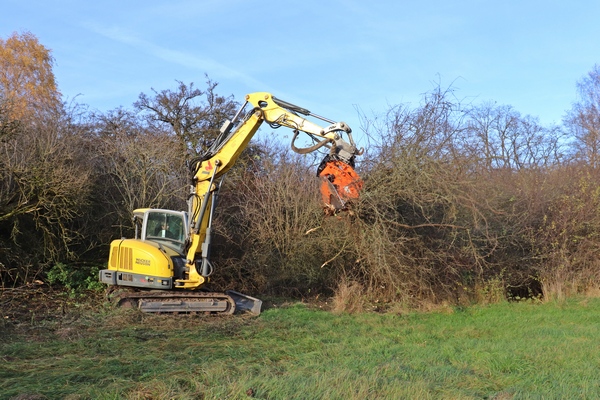 Berndorf(Maren Lange). Die Naturwiesen „Hollenholz“ westlich von Berndorf haben sich unter dem jahrelangen, kontinuierlichen Einsatz der NABU-Ortsgruppe Twistetal zu höchst wertvollem Grünland mit herausragender Artenvielfalt entwickelt. So blühen hier jedes Jahr im Mai zahlreiche Orchideen und bilden einen beeindruckenden, hell-rosapurpurnen Blütenteppich. Da jedoch randliche Hecken zunehmend in die Fläche dringen und ebendiese lichtliebenden Pflanzen zu überwuchern drohten, sind der Landschaftspflegeverband Waldeck-Frankenberg und der NABU Twistetal nun gemeinsam tätig geworden. Mitte November rückten große Maschinen eines vom Landschaftspflegeverband beauftragten, heimischen Landschaftspflegeunternehmens an, um umfassend Schlehengebüsch zurück zu drängen. Einzelne Weißdornsträucher und Obstbäume wurden hierbei gezielt erhalten und freigestellt. Die Gehölzarbeiten wurden vom ersten Vorsitzenden des NABU Twistetal, Friedhelm Wernz, vor Ort fachlich begleitet. Die neu freigestellten Bereiche können nun in die Beweidung integriert werden, sodass eine dauerhafte Offenhaltung möglich ist und sich hier ebenfalls wertvolles Grünland entwickeln kann.