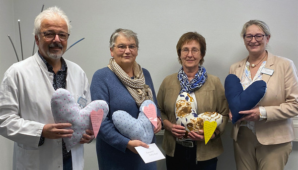 „Besonders freuen wir uns über das große Engagement des Handarbeitskreises „Rostige Nadeln“ aus Höringhausen, der uns schon seit 12 Jahren mit selbstgenähten Herzkissen unterstützt. Direkt nach der Brustoperation erhalten die Frauen das weiche Kissen mit einem aufmunternden Spruch. Diese Geste zaubert mancher Patientin ein Lächeln ins Gesicht. Die Kissen sind nicht nur ein schönes Geschenk, sondern erfüllen auch einen wichtigen medizinischen Zweck“, erklärt Chefarzt Volker Aßmann. „Sie stützen die empfindliche Achselhöhle und fördern den Lymphabfluss.“ Das Kreiskrankenhaus bedankt sich regelmäßig mit einem finanziellen Beitrag, damit der Handarbeitskreis davon benötigte Materialien besorgen kann. Der Großteil der Materialien und Stoffe wird aber von den Näherinnen gespendet und bereitgestellt. „Wir wissen Ihren unermüdlichen Einsatz sehr zu schätzen. Ein Anruf genügt, und wir bekommen eine neue Lieferung. Die von Ihnen genähten Herzkissen sind für unsere Brustkrebspatientinnen nach der Operation von unschätzbarem Wert. Die Patientinnen berichten uns immer wieder, wie wohltuend die Kissen sind und wie sehr die damit verbundene Anteilnahme bei der Genesung hilft“, stellt die Geschäftsführerin des Kreiskrankenhauses Margarete Janson fest.