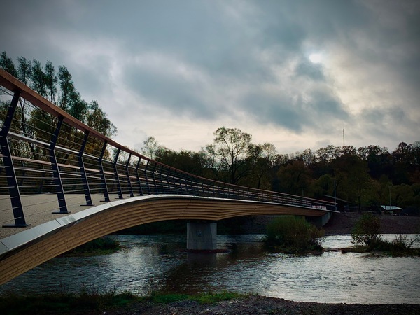 Frankenberg(pm). Die drei CO2-neutralen Frankenberger Ederbrücken sind in der Kategorie Fuß- und Radwegebrücken für den Deutschen Brückenbaupreis 2025 nominiert. Der Preis zeichnet seit 2006 alle zwei Jahre Deutschlands beste Brücken-Neubauten, kreative Instandsetzungen und Ertüchtigungen aus. Prämiert werden auch innovative Ideen für mehr Nachhaltigkeit bei Brückenbauwerken. Die Entscheidung fällt am 19. März in Dresden. In der Projektbeschreibung der Ederbrücken heißt es: „Die Ingenieure entwickelten eine elegante und nachhaltige Lösung für eine Blockträgerbrücke aus Holz, die sich harmonisch in die Umgebung einfügt. Besonders bemerkenswert: die innovative Konstruktion, die ästhetisch wie funktional überzeugt und neue Impulse im Brückenbau mit Holz setzt.“ Entworfen hat die Frankenberger Brücken das Ingenieurbüro Miebach aus Lohmar. „Die nominierten Bauwerke setzen Maßstäbe – sei es in Bezug auf Funktionalität, Nachhaltigkeit oder gestalterische Integration in ihre Umgebung“, erklärt Juryvorsitzender Prof. Dr.-Ing. Gero Marzahn vom Bundesministerium für Digitales und Verkehr die Auswahl.