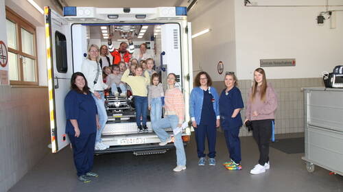 Ein Rettungswagen des Deutschen Roten Kreuzes war ebenfalls vor Ort. Die Sanitäter zeigten die Ausrüstung, erklärten den Ablauf eines Notrufs und ließen natürlich auch einmal das Blaulicht an. Die Besuche im Krankenhaus waren nicht nur lehrreich, sondern auch aufregend. Vielleicht hat dieser Tag ja den einen oder anderen dazu inspiriert, später einmal selbst einen Beruf im Krankenhaus zu ergreifen.