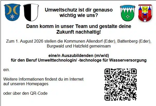 Allendorf (Eder), Battenberg (Eder), Burgwald und Hatzfeld (Eder). Sie haben Interesse an Umweltschutz und Nachhaltigkeit? Und Sie möchten gerne einen zukunftsorientierten Beruf ausüben, bei dem sich technischer Anspruch und ökologische Verantwortung die Hände reichen? Dann wird Sie diese Ausbildung begeistern! Hier dreht sich alles um umweltfreundliche Technologien und wie diese in der Trinkwasserversorgung eingesetzt werden. Sie entwickeln dabei ein tiefes Verständnis für die Themen Wasserverteilung und lernen unser wichtigstes Lebensmittel effizient sicher und in bester Qualität zu den Menschen zu bringen. Es erwarten Sie bei uns spannende Aufgaben in verschiedenen Bereichen der Wasserwirtschaft – von der Überwachung bis hin zur Planung und Optimierung von wassertechnischen Anlagen.