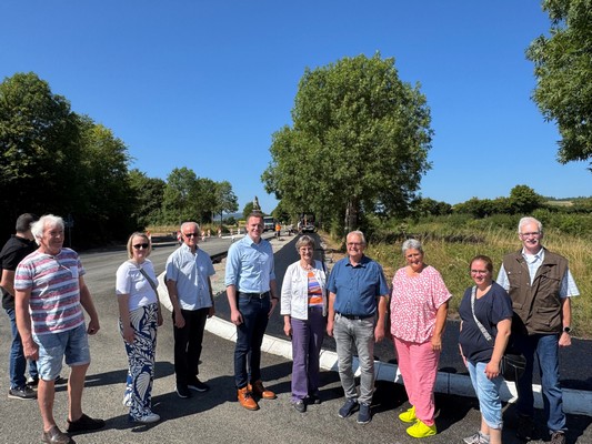 Radfahrer und CDU Fraktionsvorsitzender Stephan Noll freuen sich über die sichere Querungsmöglichkeit über eine neue Verkehrsinsel auf der B253, die auch Radfahrern mit Anhängern eine sichere Warteposition in der Fahrbahnmitte der stark frequentierten Bundesstraße bietet. Nach Abschluss der Radquerung beginnt bereits das nächste Zukunftsprojekt in Haine, kündigt Bürgermeister Carsten Schäfer an. Ortsvorsteherin Silvia Hoffmann-Huhn freut sich, dass der lang erwartete Neubau des Feuerwehrhauses jetzt startet, das künftig neben den beiden Feuerwehrfahrzeugen einen weiteren Stellplatz für ein Katstrophenschutzfahrzeug des Landes Platz bieten wird.