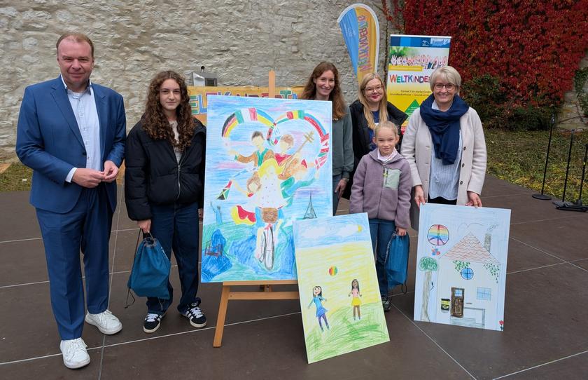 Auf dem Gelände rund um die Burgruine warteten 18 Akteure mit vielfältigen Angeboten: Vom Maskenmalen und Buttons-Gestalten über sportliche Stationen beim Kibaz bis hin zum Entenangeln und Erinnerungsfotos für die ganze Familie. Die Jugendbeteiligungskonferenz lud zum Kinderrechte-Quiz ein und gestaltete eine farbenfrohe „Wimpelkette der Demokratie“. Zum Abschluss wurde das Gewinnerbild enthüllt, das die Rückseite des Schulferienkalenders 2026 schmücken wird. Christina aus Bad Lippspringe gewann den Wettbewerb. Auch der Malwettbewerb stand unter dem Motto „Bausteine für Demokratie“. Die Bilder zeigten internationale Fahnen, Begegnungen junger Menschen, Gemeinschaft und gemeinsame Spiele. „Ein Tag im Sinne der Demokratie und der Kinder mit einer klaren Botschaft: Kinder haben Rechte – und ihre Stimmen zählen“, sagte Annette Mühlenhoff abschließend.