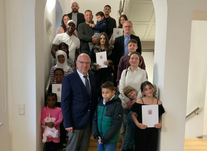 Die 18 frisch Eingebürgerten leben bereits seit mehreren Jahren in unserer Stadt und wohnen zwischen vier und 37 Jahren in Deutschland. Auf ihre Zusage zur Einbürgerung haben sie zwischen zweieinhalb bis acht Jahre gewartet. Einige von ihnen arbeiten in lokalen Unternehmen, Krankenhaus- und Pflegeeinrichtungen sowie Arztpraxen oder besuchen die hiesigen Bildungseinrichtungen. Mit Aushändigung der Einbürgerungsurkunden endet ein sehr langer Prozess – zugleich beginnt ein neuer Abschnitt als vollwertige Mitglieder der deutschen Gesellschaft.