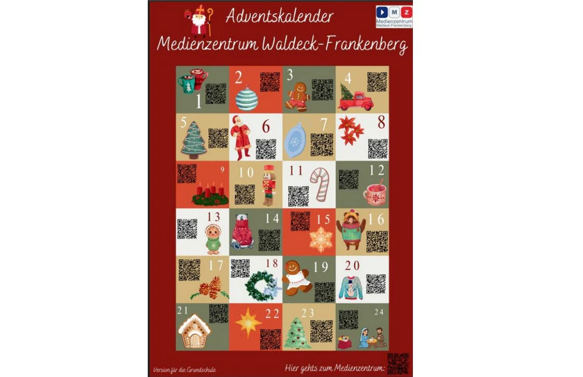 „Mit dem Adventskalender möchten wir allen Schülerinnen und Schülern eine inspirierende Adventszeit ermöglichen und zugleich zeigen, wie abwechslungsreich digitale Medien im Unterricht eingesetzt werden können“, betont Alexander Emde, der Leiter des Medienzentrums Waldeck-Frankenberg. Die Adventsaktion ist Teil des landesweiten Engagements der hessischen Medienzentren, Schulen beim digitalen Lehren und Lernen zu unterstützen. Durch qualitätsgesicherte Medien, Fortbildungsangebote und technische Unterstützung tragen die Medienzentren zur Weiterentwicklung moderner Unterrichtsformen bei. Weitere Infos gibt es auch online unter medienzentrum.landkreis-waldeck-frankenberg.de.