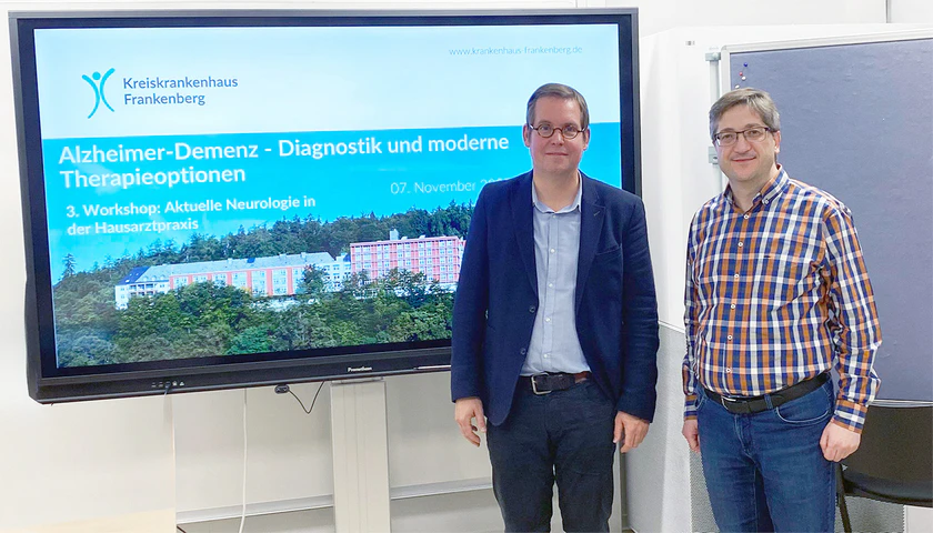 Frankenberg(pm). Die Alzheimer-Demenz ist eine häufige Erkrankung in Deutschland. Derzeit leben 1,8 Millionen Betroffene mit dieser Diagnose. In den nächsten 25 Jahren ist mit einer Zunahme auf 2,7 Millionen Betroffenen zu rechnen. Neben dem persönlichen Leid der Patienten, ist die Belastung der Angehörigen in der Betreuung und Pflege immens. Große Hoffnungen setzt die Medizin auf neue verlaufsmodifizierende Therapieansätze. Ein neues Präparat wurde im September 2025 für den europäischen Markt zugelassen. Dies nahm der Sektionsleiter der Neurologie am Kreiskrankenhaus Frankenberg, Dr. med. Wael Marouf, zum Anlass, seine niedergelassenen hausärztlichen und internistischen Kollegen zu einem Workshop in die Kreisklinik einzuladen. Das Ärzte-Team der Klinik sucht regelmäßig den Austausch mit den Ärzten aus der Umgebung, insbesondere wenn es um neue Behandlungsoptionen geht. Die Patienten aus der Region profitieren von einer engen Zusammenarbeit der Klinikärzte mit ihren Haus- und Fachärzten.