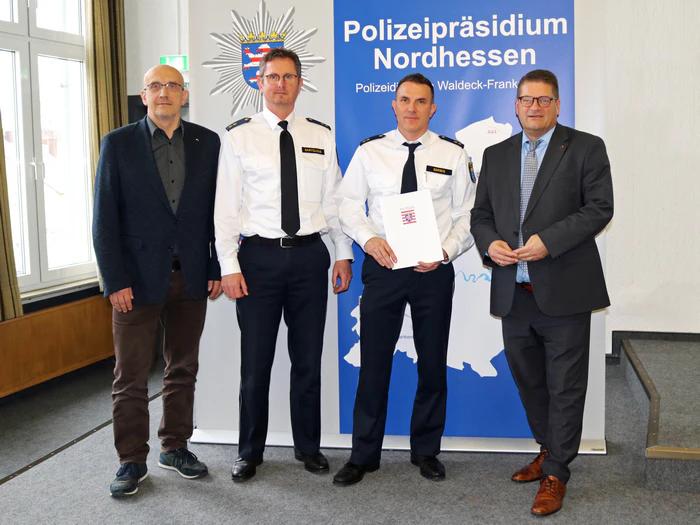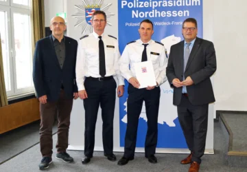 Korbach(ots). Bei der Polizeidirektion Waldeck-Frankenberg hat es einen Führungswechsel gegeben: Polizeioberrat Martin Berbig übernimmt die Leitung von Polizeioberrat Dirk Bartoldus, der die Polizeidirektion seit April 2025 kommissarisch geleitet hat und nun die Leitung der Direktion Verkehrssicherheit / Sonderdienste in Baunatal übernimmt. Im Rahmen einer Führungsbesprechung hat Polizeipräsident Marco Bärtl Martin Berbig in sein neues Amt eingeführt. Polizeioberrat Dirk Bartoldus übernahm im April 2025 die Führung der Polizei im Landkreis Waldeck-Frankenberg, nachdem Tino Hentrich, der die Polizeidirektion fast drei Jahre geleitet hatte, als Leitender Polizeidirektor ins Polizeipräsidium nach Mittelhessen in Gießen wechselte. Dirk Bartoldus hatte zuvor zahlreiche Führungsfunktionen im Polizeipräsidium (PP) Nordhessen wahrgenommen. Unter anderem war er sechs Jahre als Polizeiführer vom Dienst und