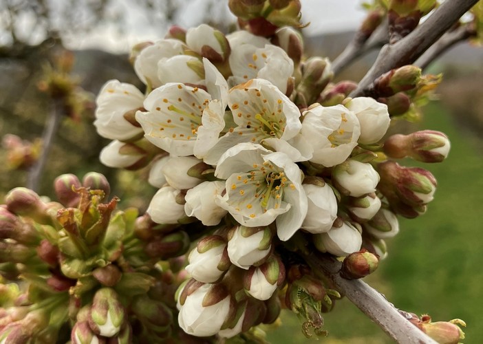 Witzenhausen/Kassel. In der Region um Witzenhausen hat die Kirschblüte begonnen: Die Bäume verwandeln die Landschaft in ein frühlingshaftes Blütenmeer. Zwischen den Zweigen sind derzeit zahlreiche Wild- und Honigbienen sowie Hummeln unterwegs. Mit ihrer Bestäubungsarbeit sichern sie die Fruchtbildung – und damit den Ertrag der kommenden Ernte. „Bereits Anfang April öffneten die ersten frühen Süßkirschensorten ihre Blüten und damit zwei Wochen früher als im langjährigen Durchschnitt“, berichtet Christian Dyroff aus dem Beratungsteam Gartenbau des Landesbetriebs Landwirtschaft Hessen (LLH). Er ergänzt: „Je nach Wetterlage erstreckt sich die Blüte einer Sorte im Schnitt über vier bis acht Tage.“ Die zeitlich gestaffelte Blüte gilt als natürliche Schutzstrategie der Bäume, um trotz wechselhafter Witterung Bestäubung und Fruchtbildung zu sichern.
