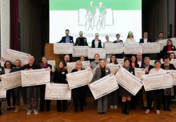 27 Begünstigte erhalten Spendengelder in Höhe von 1.273.000 Euro Heuchelheim(pm). Sonniger hätten die drei Tag im August nicht sein können: Fast 240 Kilometer legte die 42. Tour der Hoffnung dabei zurück. Die Strecke führte durch Mittel- über Südhessen bis nach Rheinland-Pfalz. Den Erfolg können die ehrenamtlich Aktiven am Spendenerlös messen: 1.273.000 Euro haben die 150 Radlerinnen und Radler in den traditionell grünen Trikots und gelben Helmen diesmal eingesammelt. Zum Jahresabschluss der Benefizradtour fand im mittelhessischen Heuchelheim die Spendenübergabe statt, nachdem das Medizinische Kuratorium zuvor über gestellte Anträge entschieden hatte. 27…