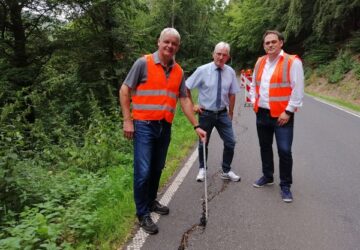 Frebershausen(pm). Erster Kreisbeigeordneter und Baudezernent Karl-Friedrich Frese informierte sich gemeinsam mit Sachbearbeiter Kreisstraßen des Fachdiensts Bauen Adolf Scheuermann bei einem Ortstermin mit Hessen Mobil über eine Hangsicherung, die an der Kreisstraße 38 zwischen Bad Wildungen-Frebershausen und Bad Wildungen-Albertshausen erforderlich wird. „Hessen Mobil untersucht derzeit im Auftrag des Landkreises Fahrbahnschäden, die im Böschungsbereich aufgetreten sind“, erklärte Frese. Auf einer Länge von 120 Metern in Höhe des Dreisbachs zeigen sich Abrutschungen an der Böschung zur Talseite hin. Diese gefährden die Standsicherheit der Straße. Der Schaden wurde zwar bereits im Februar festgestellt und…